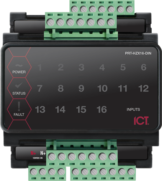 The Protege Half DIN Rail 16 Zone Input Expander is a versatile expansion module designed to enhance security systems with its 16 monitored inputs. It supports any combination of normally closed or normally open inputs, with each input configurable to meet specific requirements. The expander utilizes advanced analog-to-digital processing with five times oversampling for precise monitoring.