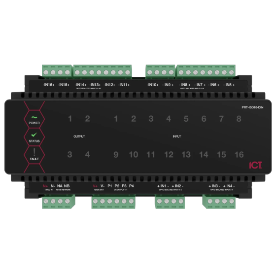 The Protege DIN Rail 16 Input Opto-Isolated Expander enhances the Protege system by providing 16 opto-isolated inputs, each electrically isolated to ensure reliable monitoring and automation. This expander is ideal for managing a wide range of open contact sensors, making it suitable for security, elevator control, and building automation.