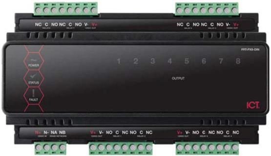 The Protege DIN Rail 8 Output Expander enhances the Protege integrated access control, security, and building automation system by adding eight outputs for automation tasks. Equipped with high-current Form C relays, this output expander offers advanced hardware capabilities that enable flexible and efficient control of building systems, including lighting and HVAC.