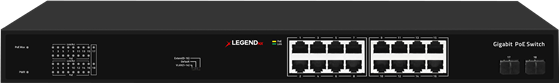 Le LGNX162POE est un commutateur PoE Gigabit (non géré) à 16 ports, conçu pour une efficacité énergétique optimale. Il dispose de 16 ports RJ45 PoE+ (30 W max. par port) et de 2 ports uplink SFP Gigabit, offrant une capacité de commutation de 36 Gbps, un budget PoE de 200 W, ainsi que la prise en charge du VLAN et du mode de commutation stockage et retransmission. Équipé d’une protection contre les surtensions intégrée et prenant en charge une transmission étendue jusqu’à 250 m, il assure des performances fiables pour les installations en rack, avec une plage de fonctionnement de -10°C à 50°C.