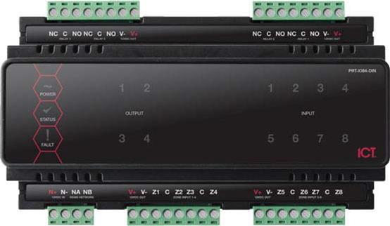 The Protege DIN Rail 8 Input 4 Output Expander enhances the Protege system by significantly expanding its input and output capabilities. This module increases the number of monitored inputs by eight, accommodating a diverse range of EOL-capable or open contact sensors. Additionally, it adds four high-current Form C relay outputs, ideal for controlling building systems such as lighting and HVAC.