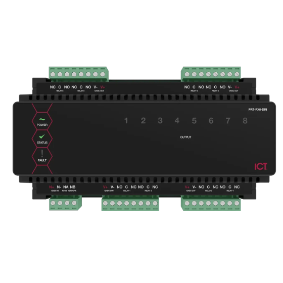 The Protege DIN Rail 8 Output Expander enhances the Protege integrated access control, security, and building automation system by adding eight outputs for automation tasks. Equipped with high-current Form C relays, this output expander offers advanced hardware capabilities that enable flexible and efficient control of building systems, including lighting and HVAC.