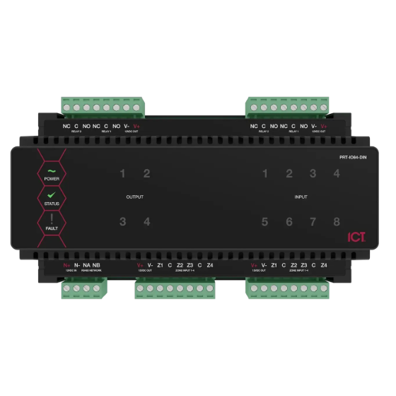 The Protege DIN Rail 8 Input 4 Output Expander enhances the Protege system by significantly expanding its input and output capabilities. This module increases the number of monitored inputs by eight, accommodating a diverse range of EOL-capable or open contact sensors. Additionally, it adds four high-current Form C relay outputs, ideal for controlling building systems such as lighting and HVAC.